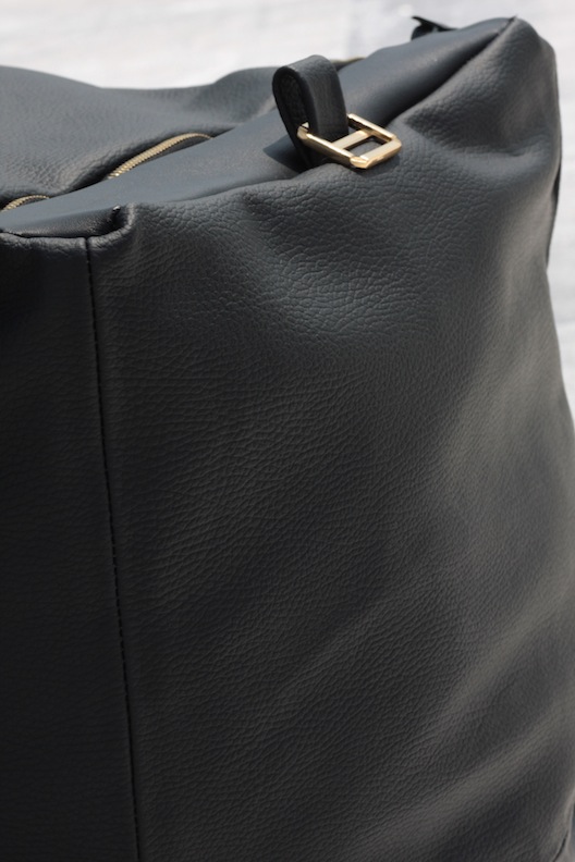 When traveling, I've found that there's nothing more frustrating, than buying souvenirs or additional clothing while on a trip and not having the proper space to pack the items in the original bag that you brought with you. As well as having to pack a separate bag your shoes. Therefore I constructed an extra-large duffle/weekend bag. The bag measures approximately 25" in width, 15" in height and 15" in depth, made with 100% black cowhide leather, featuring one complete 60" gold metal o-type Lampo zipper and is lined with 100% black cotton twill. Which serves as the perfect vacation travel bag.